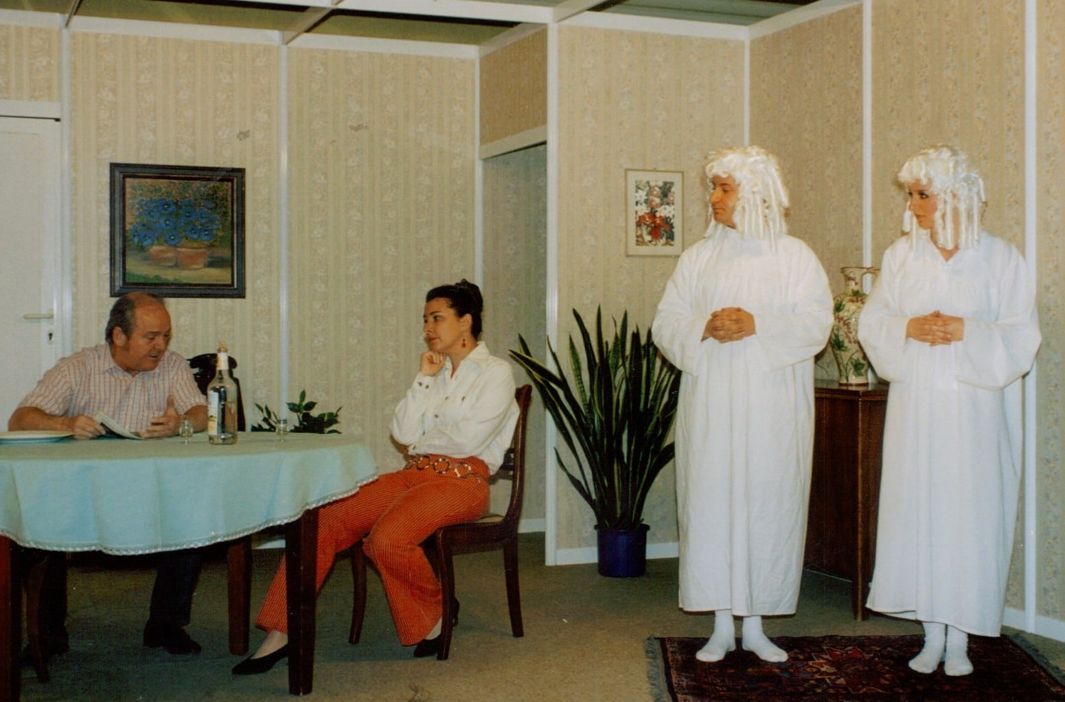 – Engel Kicky und Engel Isabel haben einen gemeinsamen Auftrag auf der Erde, aber ein sehr unterschiedliches Temperament. Kicky agiert und Isabel begnügt sich mit Kommentaren. Unter ihre Fittiche gestellt wurde Familie Weber, die nicht nur dem Alkohol verfallen ist, sondern dabei ist, sich mit der Herstellung von Falschgeld selbst aus der finanziellen Misere zu helfen. Richtig kriminell wird es aber erst, als Oskar hereinschneit. Er stellt sich als Neffe der Tante und millionenschwerer Erbe ihres Bruders vor. Damit wird er natürlich hochinteressant für die Familie, die ihm noch ihre letzten Geldreserven hinterherwirft. Aus Versehen gelangen die ersten Probeblüten in Umlauf, die Polizei findet den Weg zu Webers. Aber niemand muß ins Gefängnis, alle Schuld wird auf Bubi, alias Oskar abgewälzt, der mit dem Hausmädchen, seiner Zukünftigen, schon über alle Berge ist. Da stellt sich wieder ein Verwandter der Tante vor!