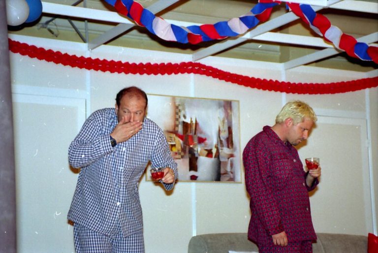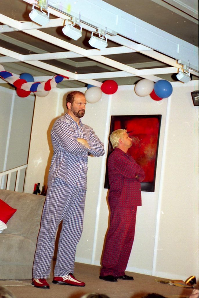 – Der Serienschauspieler Clint Walker kandidiert als Senator vom Staat New York. Deshalb hat er seine engen Vertrauten kurz vor der Wahl zu einer Wahlkampfparty eingeladen. Nur dumm, dass er die Einladungen mit denen seines Sohnes vertauscht hat, der eigentlich seinen Geburtstag mit einer Pyjamaparty feiern wollte. Denn Bürgermeister, Polizeipräsident und Wahlkampfmanager sowie deren Frauen erscheinen allesamt in Nachthemden und Schlafanzügen. Weiterhin dumm, dass Walker nach einem Autounfall ins Gefängnis wandert. Unter den Partygästen bricht angesichts des drohenden Skandals Panik aus. Der dadurch noch geschürt wird, dass plötzlich alle Autos verschwunden sind, der Gouverneur als Ehrengast erwartet wird und auch noch ein Reporter seinen Besuch angekündigt hat. Als Clints Gegenkandidat unangemeldet aufkreuzt, ist das Chaos perfekt. Keiner behält mehr seine normale Identität und alle spielen sich um Kopf und Kragen. Wie in einer Fernsehserie…