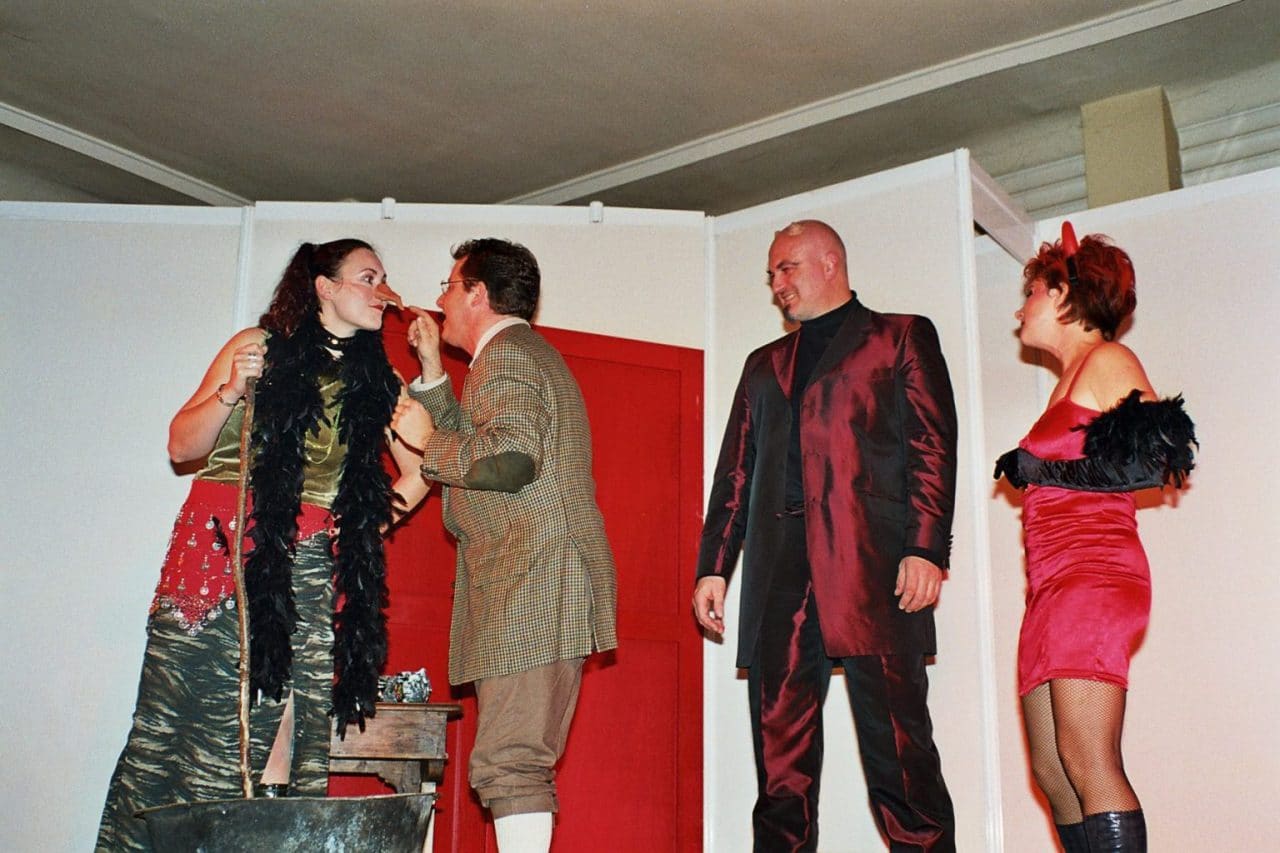 Mitwirkende: Faust: Markus Fallenegger; Mephisto: Eric Voggenberger; Gott: Dr. Norbert Wurster; Gretchen: Veronika Göttl; Wagner: Herbert Maderthaner; Engerl (Seraphim): Hubert Thomas Haderer; Teuferl: Brigitte Hofmann-Koidl; Martha & Hexe: Bärbel Walther; Mitzi: Michaela Kainhofer-Stern