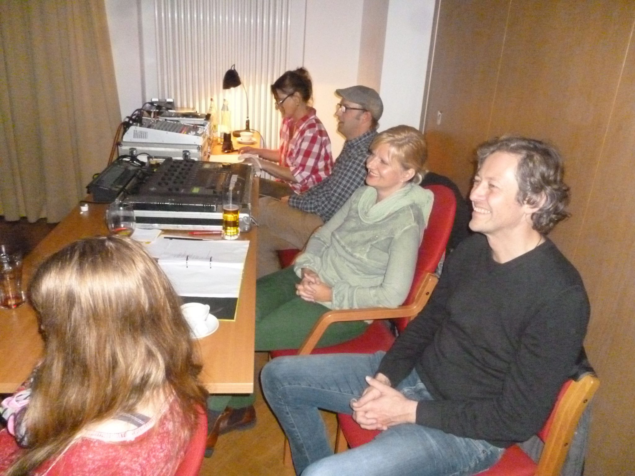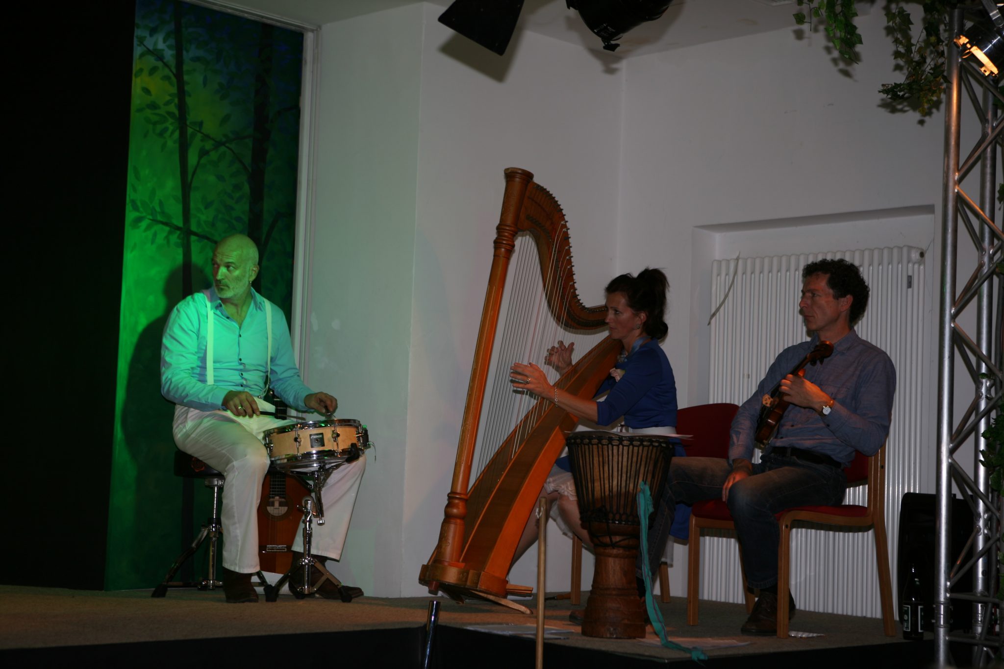 Unser „Salonorchester“: Agnes Haitz und Wolfgang Busch (Violine), Brigitte Voggenberger-Göttl (Harfe), Lilli Panzer (Gitarre), Eric Voggenberger & Team PTW (drums/percussions)