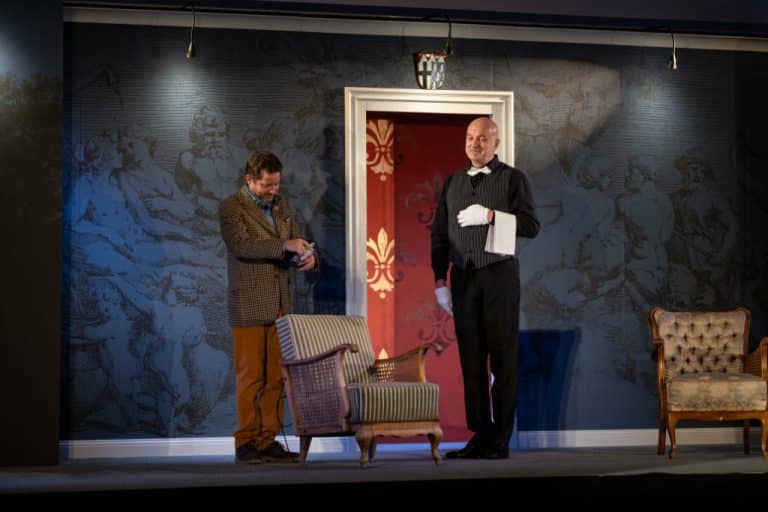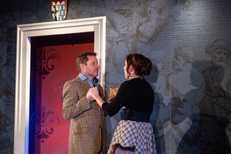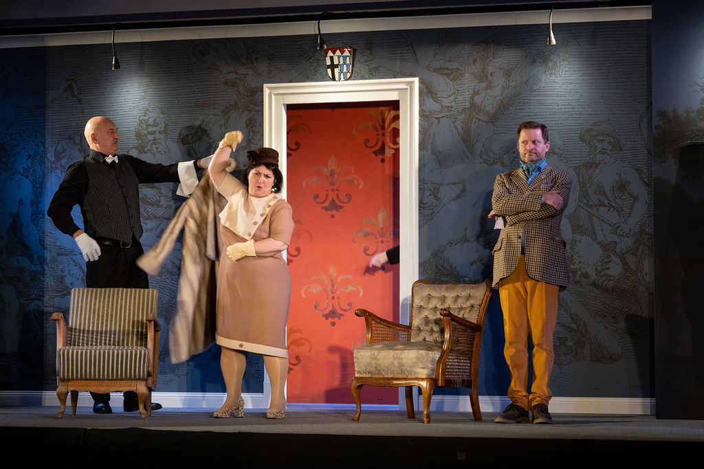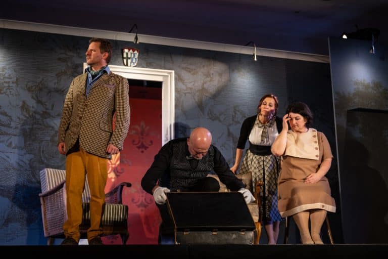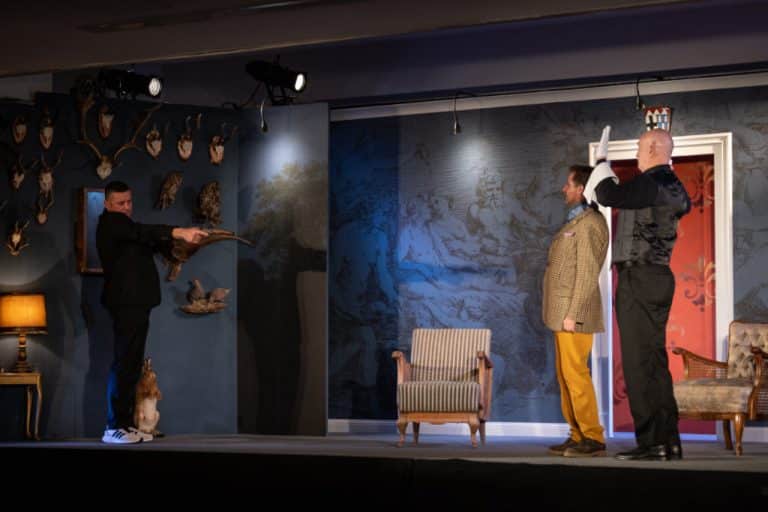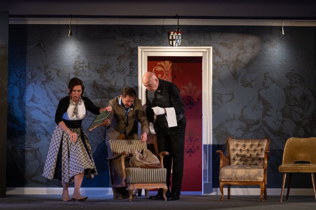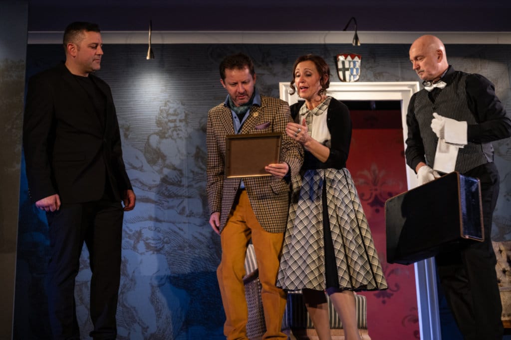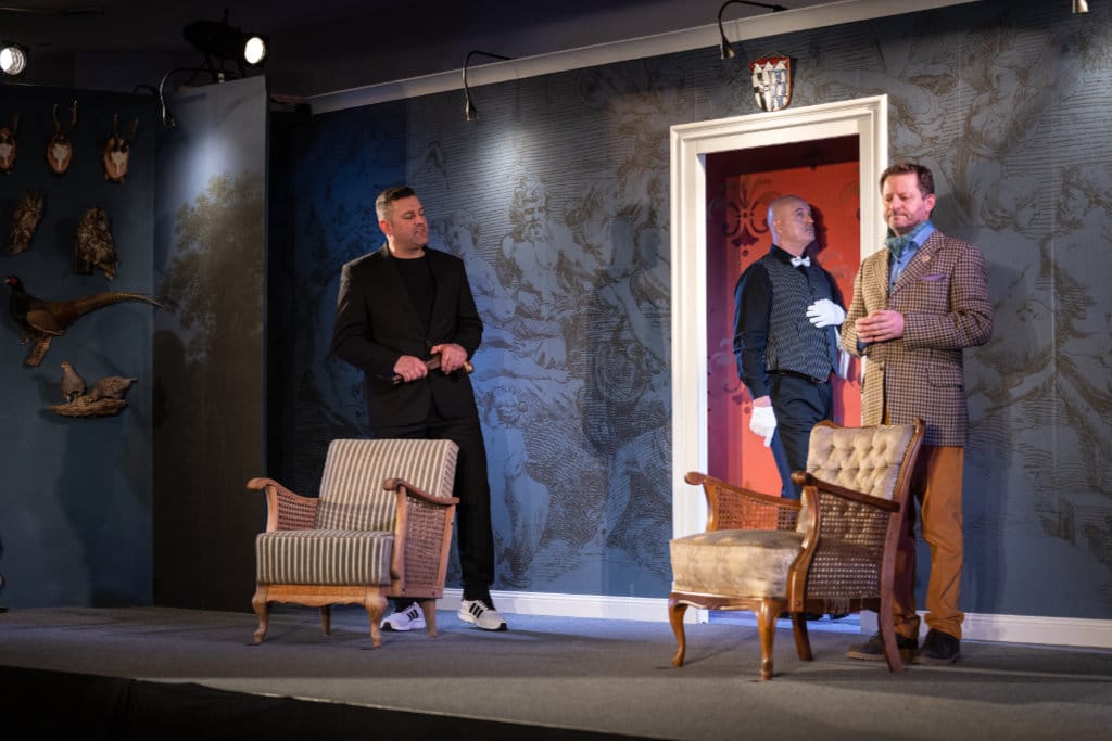 – Was tun gegen eine erdrückende Schuldenlast? Der verarmte, ehemals bürgerliche Schlossherr Elmar von Wildenburg, geb. Drösel, begibt sich in die beliebte Fernsehsendung “Suche Bares – biete Rares!”, um eine der zahlreichen Antiquitäten aus seinem dringend sanierungsbedürftigen Heim zu verkaufen. Elmar freut sich wie ein Schneekönig, als er in seinen Augen sagenhafte 2.500 Euro für ein Porzellan/Keramik-Huhn erhält – doch die Freude währt nur kurz, denn schnell stellt sich heraus: Die Preziose ist ein Vielfaches wert. Nun ist guter Rat teuer, zumal Elmar das Huhn ohne Wissen seiner Frau verkauft hat, die es zudem schon ihrer versnobten Tante Anastasia von Roskova versprochen hat. Und das ist nicht sein einziges Problem, denn seine Gattin Rosalinde steht vor einem bedeutenden Jubiläum, das angemessen begangen werden will. Zum Glück springt Elmar der ebenso beflissene wie umsichtige Butler Gisbert zur Seite. Da wundert man sich fast schon nicht mehr über das Auftauchen einer versponnenen Geisterbeschwörerin – schließlich gibt es in jedem ordentlichen Schloss einen Hausgeist, in diesem Fall ist es sogar ein tierischer. Schnell entwickelt sich eine turbulente Jagd nach dem Kunstwerk.