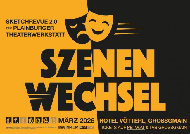 2026 – Sketchrevue „Szenenwechsel“. >> Tickets << Noch mehr Sketche und witzige Episoden aus dem *) Plausus-Verlag und dem **) Schultz-und-Schirm-Verlag – Die Fortsetzung der Großgmainer Sketch-Parade ist ein Theaterabend mit einem spielfreudigen Ensemble, voll absurder Komik, wunderbarer Gags und witziger Dialoge! Lustige Szenen aus spitzer Feder attackieren das Zwerchfell und sorgen für Lachsalven ohne…